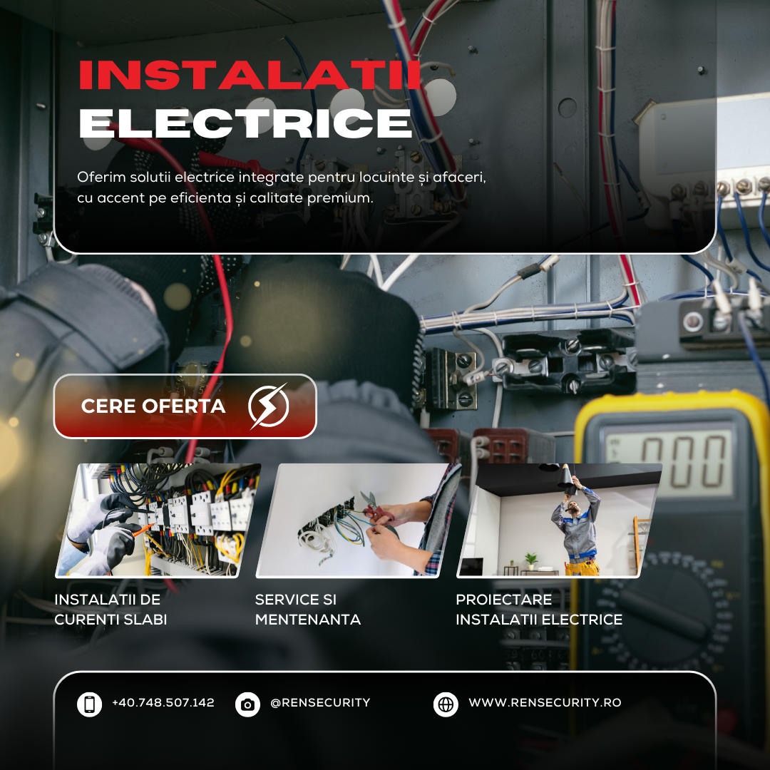 Îți oferim soluții inovatoare și personalizate pentru securitate și instalații electrice, cu profesionalism și suport dedicat. Ne angajăm să îți satisfacem nevoile și să îți asigurăm o experiență de înaltă calitate. Satisfacția ta este prioritatea noastră!